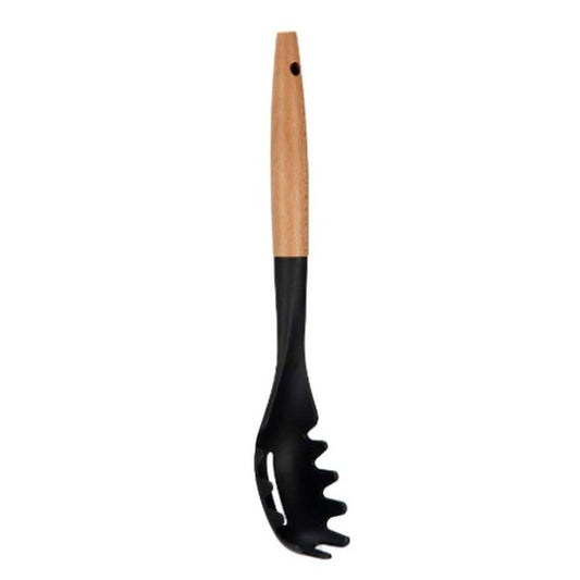 Cuchara para Pasta Kinvara en Madera Natural y Negro — Set de 12 Unidades