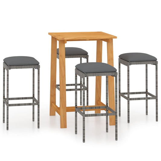 Conjunto de Bar de Jardín NNEVL 5 Piezas con Cojines – Gris, Madera de Acacia y Ratán PE